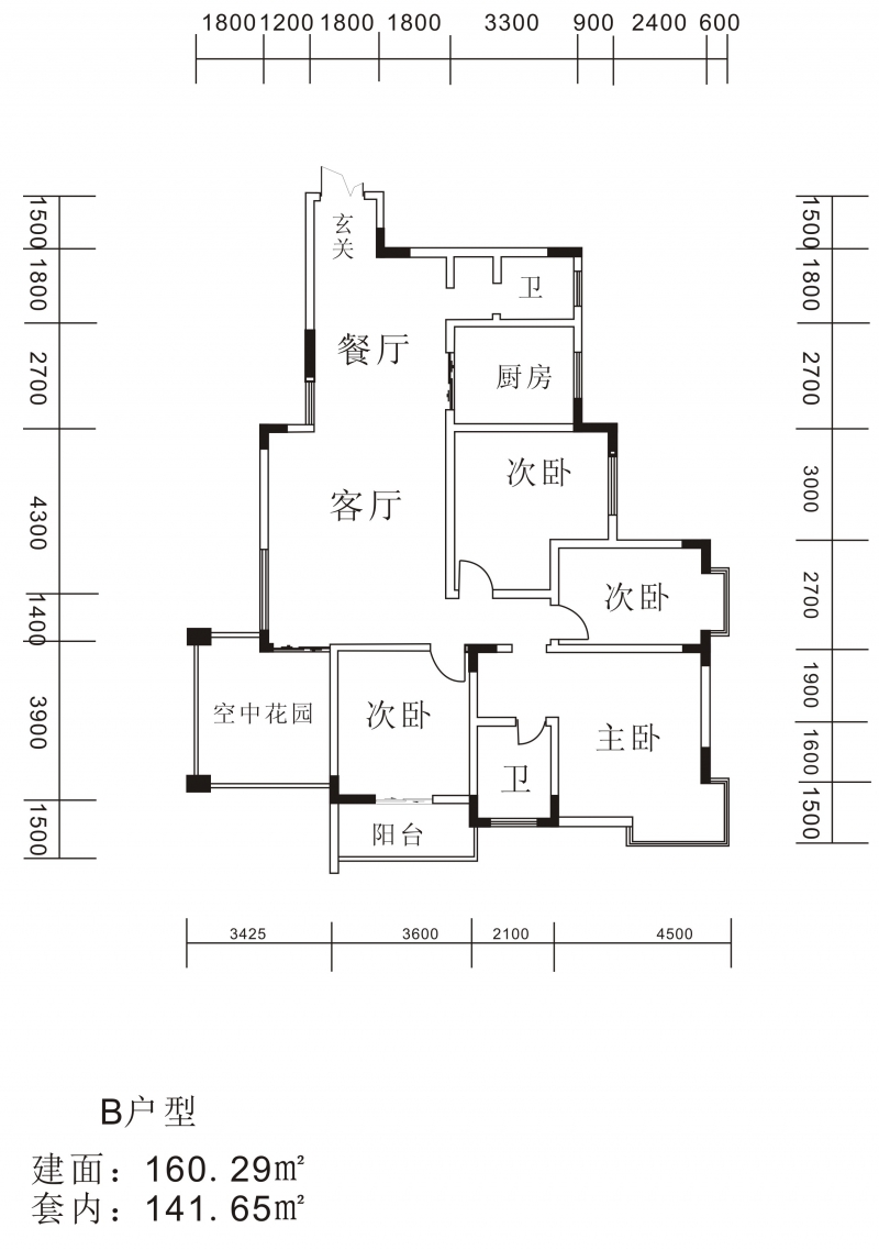 了解泗洲湾花园?漓江公馆四房B户型四房B户型四房两厅两卫160.29㎡户型的详细信息