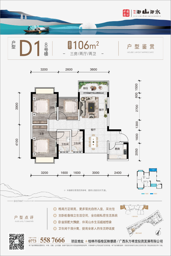 了解8#D1户型:约106㎡三房两厅两卫户型的详细信息