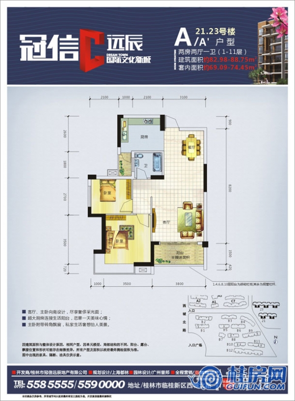 了解21、23#A户型两房两厅一卫82-88㎡户型的详细信息