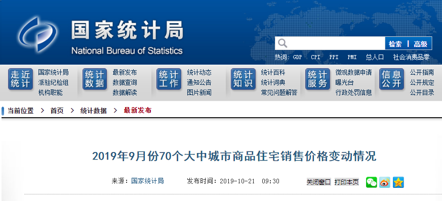 就在刚刚!国家统计局发布了2019年9月份全国70个大中城市的房价变化统计数据!据统计,53个城市新房价格、40个城市二手房价格环比上涨!