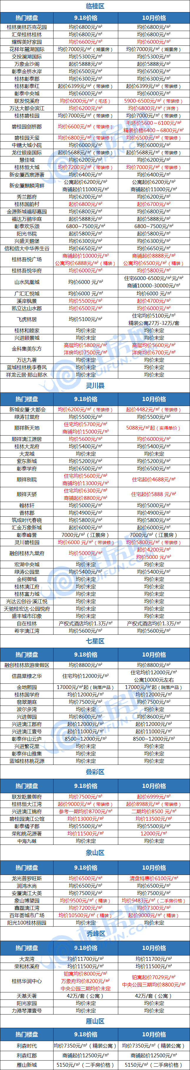 而且,从小桂统计的10月桂林各区热门楼盘的最新房价来看,桂林现在的房价似乎也有所下滑,市场上很多楼盘推出了一口价、特惠房源、首付分期等促销政策。
