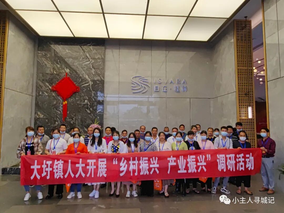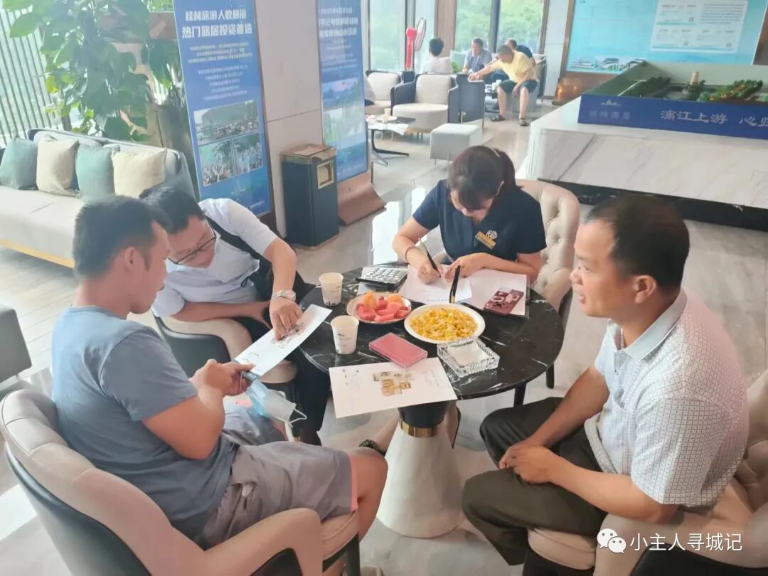 本次看房直通车大巴从九屋镇出发,连续参观了希宇·漓江湾、绿涛·公园里、大龙府和桂林千年红鸡血玉博物馆。