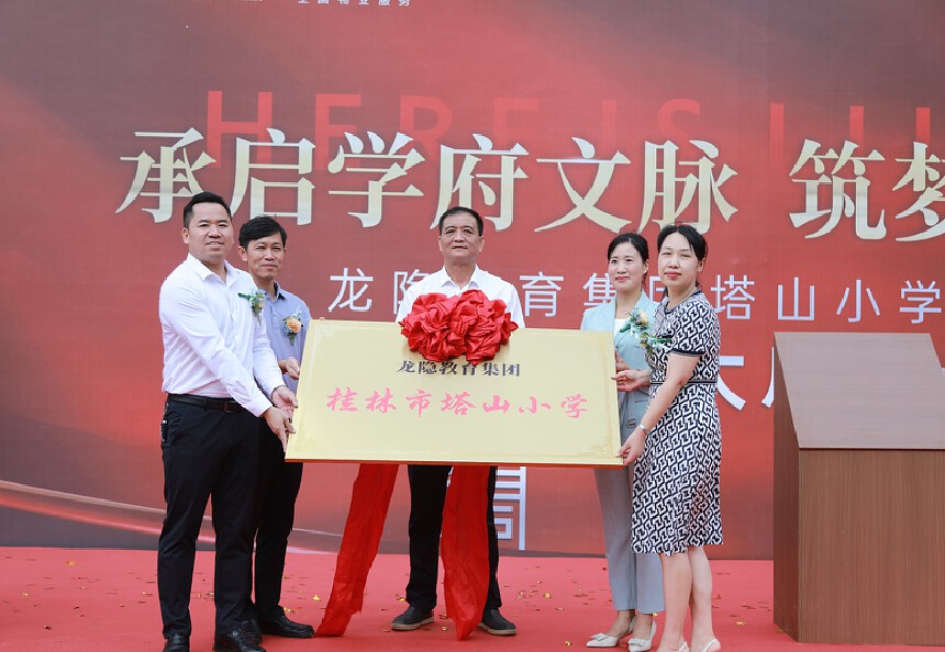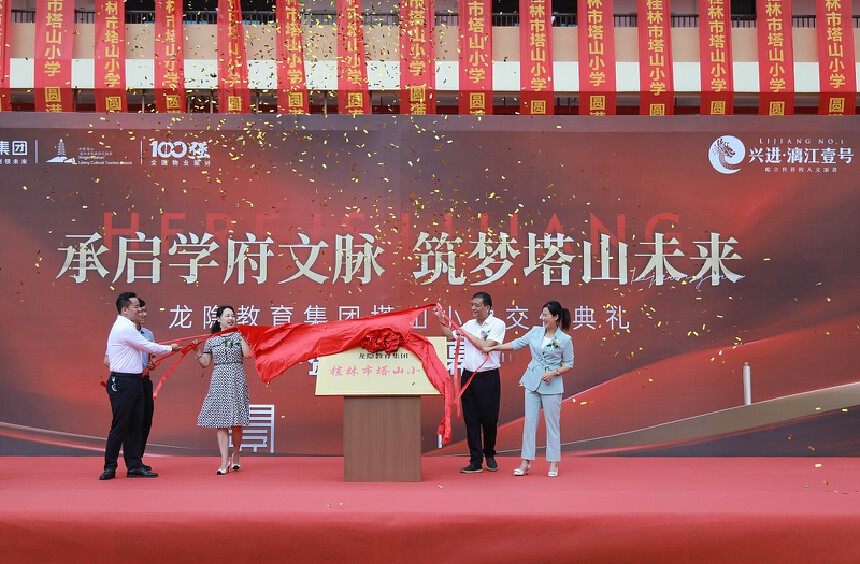 在嘉宾以及媒体的共同见证下,随着相关领导缓缓揭开红绸,龙隐教育集团桂林市塔山小学正式揭幕,自此开启新的发展征程。