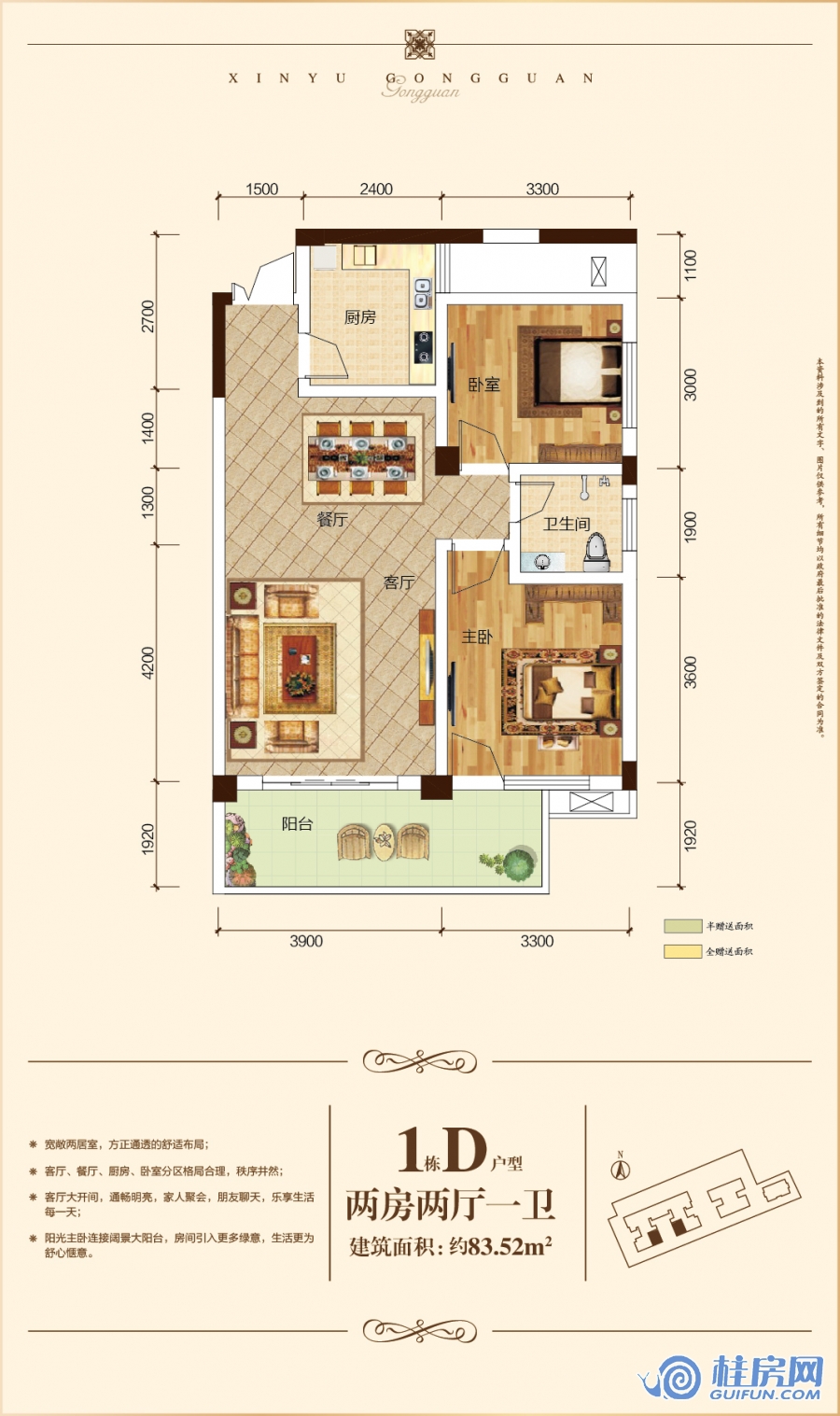 了解新裕公馆1#D户型:83.52㎡两房两厅一卫户型的详细信息