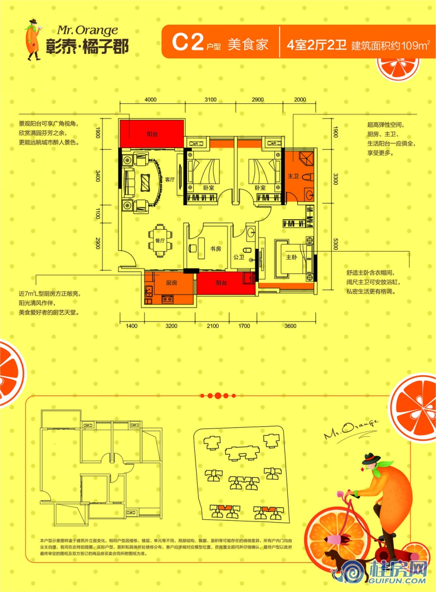 了解彰泰橘子郡C2户型 四房两厅两卫 建面约109㎡户型的详细信息