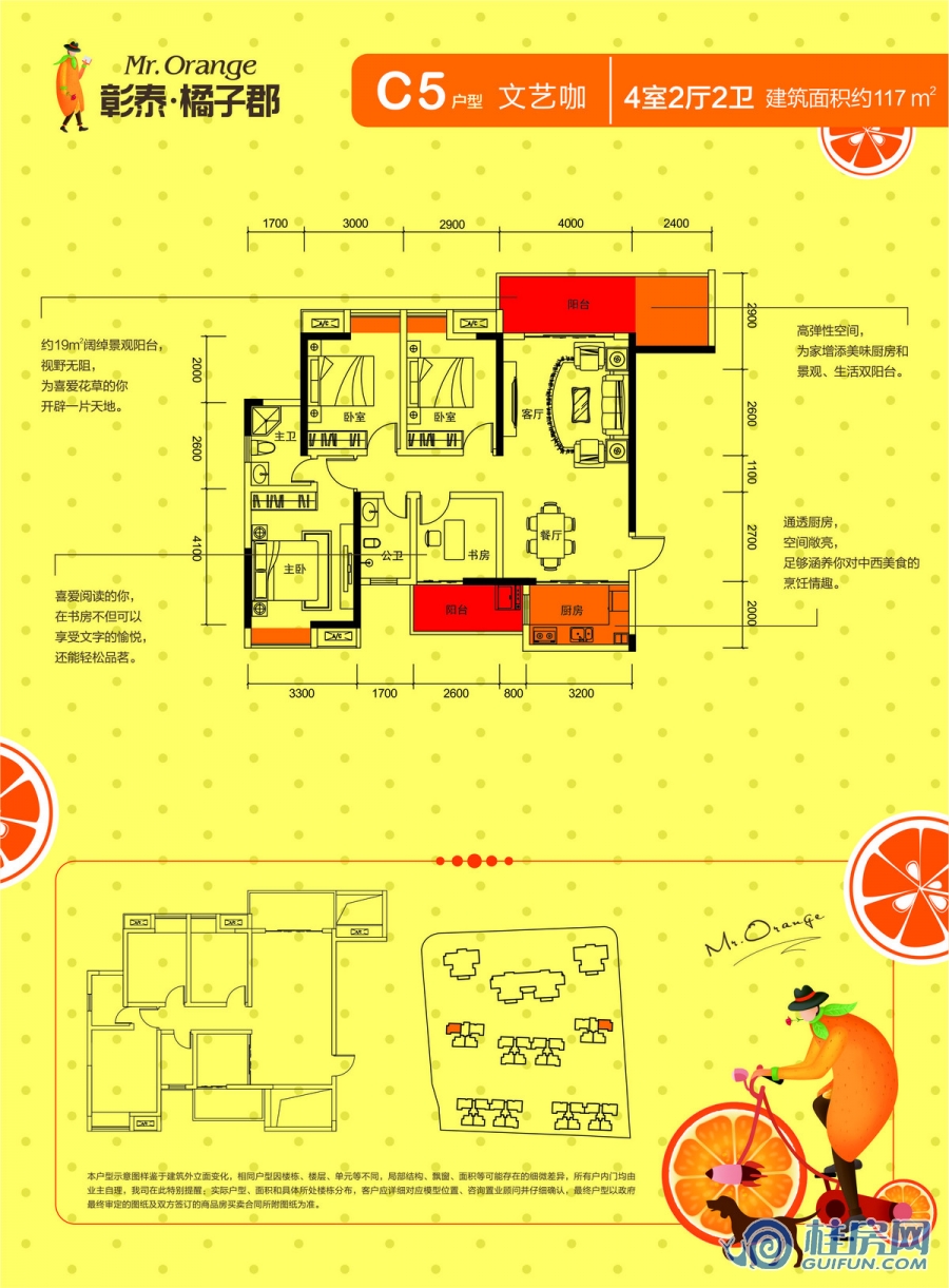 了解彰泰橘子郡C5户型 四房两厅两卫 建面约117㎡户型的详细信息