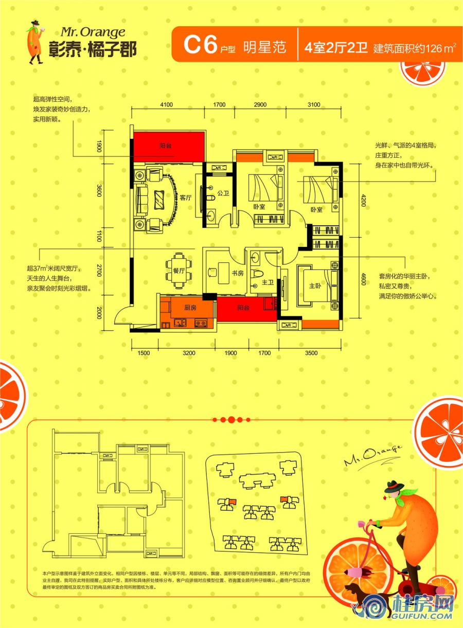了解彰泰橘子郡C6户型 四房两厅两卫 建面约126㎡户型的详细信息