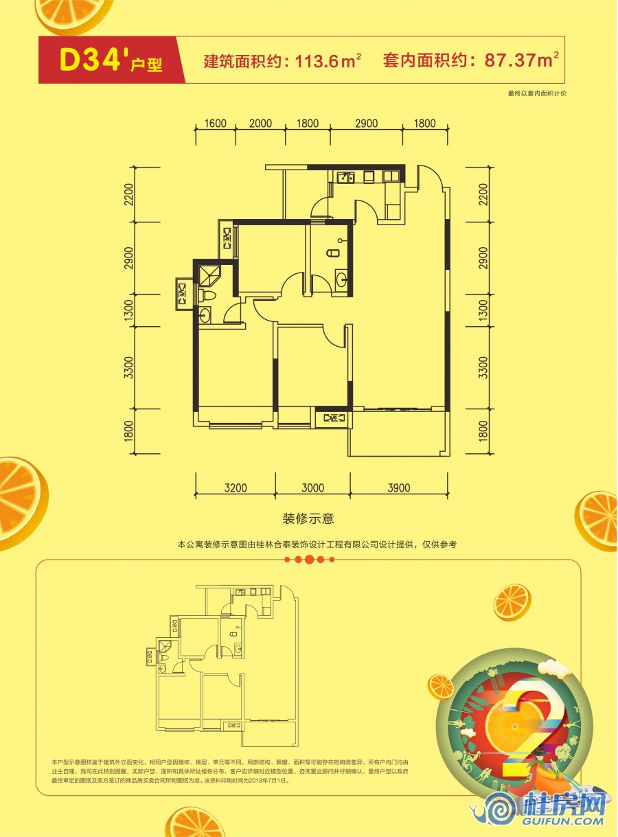 了解彰泰橘子郡D34户型 约113㎡ 三房2厅2卫户型的详细信息