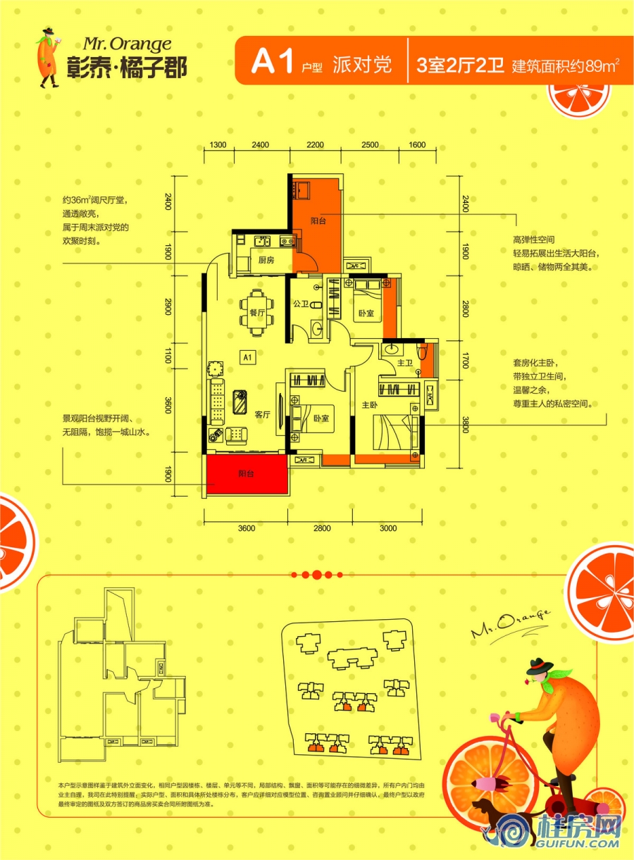 了解彰泰橘子郡A1户型 三房两厅两卫 建面约89㎡户型的详细信息