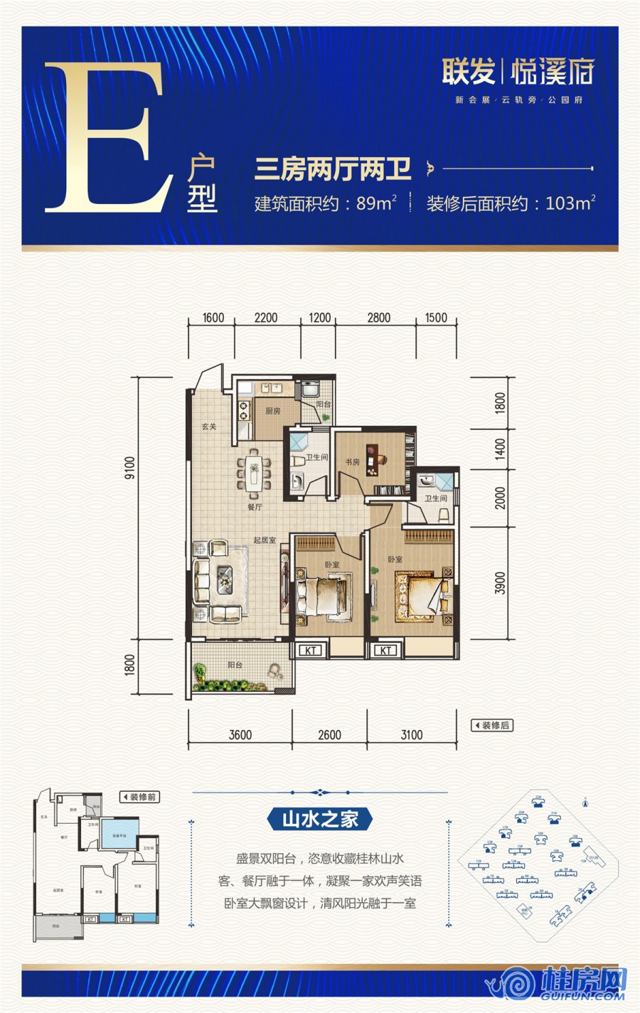了解联发悦溪府E户型 约89㎡ 三房两厅两卫户型的详细信息
