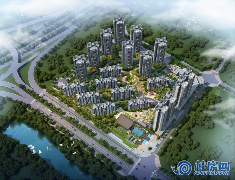 联发悦溪府整体鸟瞰效果图