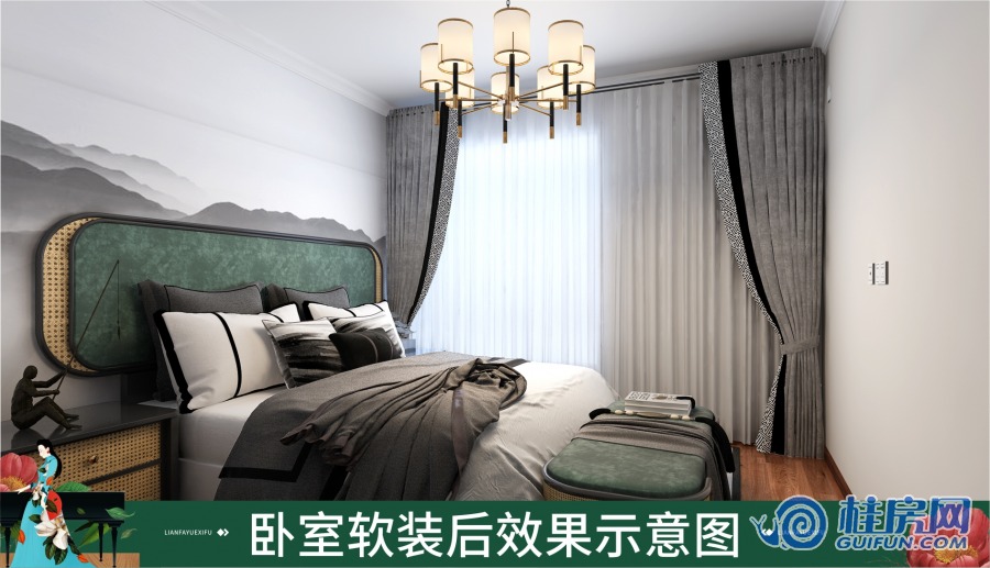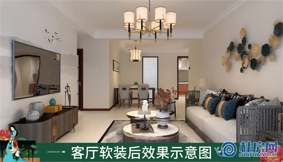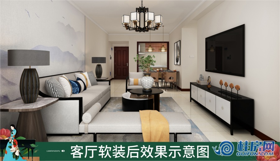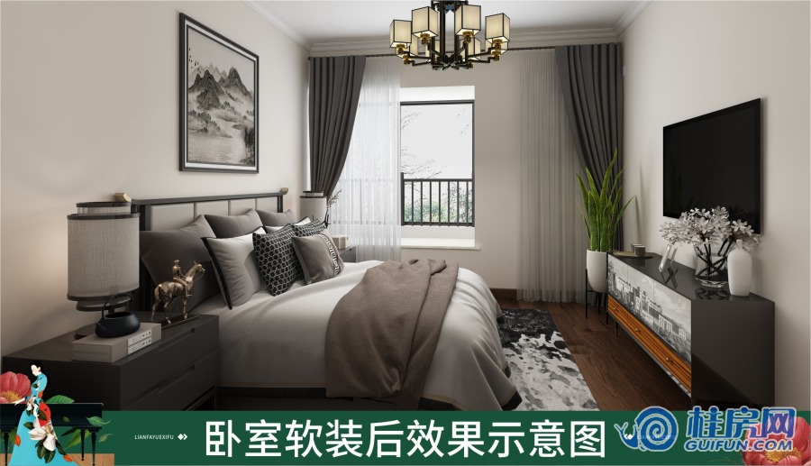 联发悦溪府108㎡装修效果图(新中式)