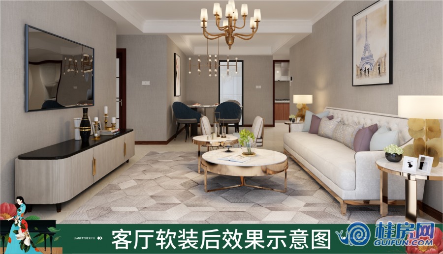 联发悦溪府120㎡装修效果图(法式轻奢)
