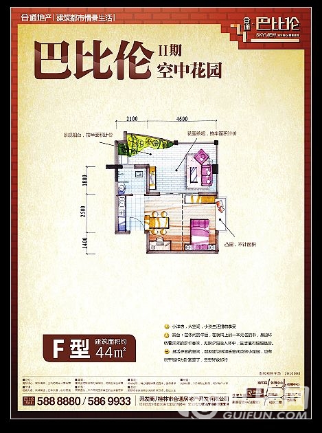 了解合通巴比伦2期F户型一房一厅一卫44㎡户型的详细信息