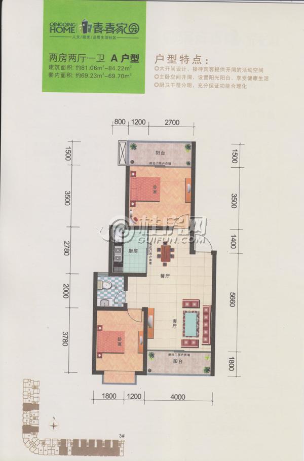 了解青青家园A户型两房两厅一卫81.06㎡-84.22㎡户型的详细信息