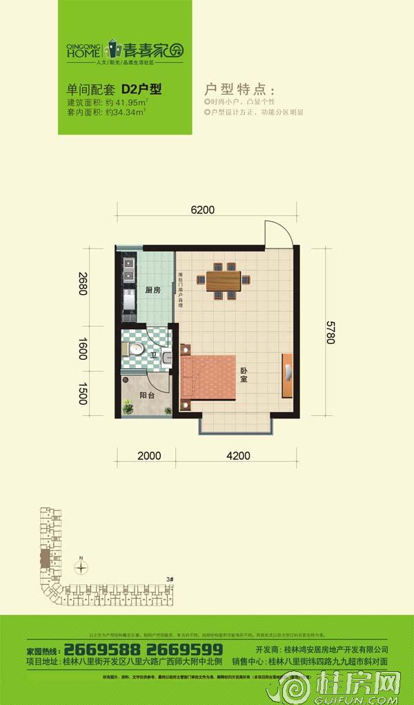 了解青青家园D2户型单间配套41.95㎡户型的详细信息