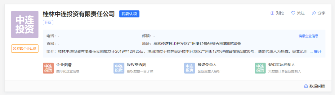 此前,南方电网官网的一则新闻显示,桂林中连投资有限责任公司在经开区投资开发有“百年基业”项目。