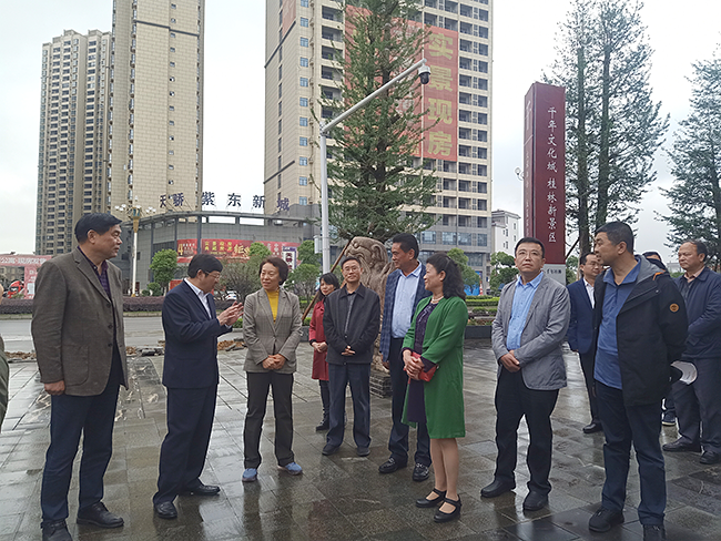 4月20日下午3点,长春市政协副主席綦远方、桂林市政协主席陈丽华一行到千年桂林项目调研参观,灵川县县委书记胡焕忠、灵川县县委常委廖明昊陈伟民董事长和董事长代表胡永康、集团公司副总经理于宏舜陪同调研。