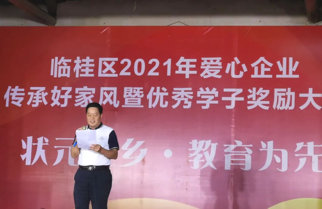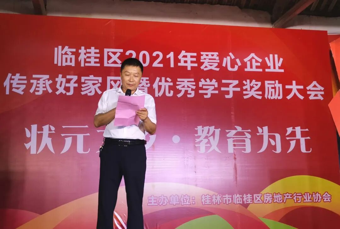 为了在全区弘扬良好家风、营造关心支持教育的浓厚氛围,8月30日,由临桂区房地产行业协会主办的临桂区2021年爱心企业传承好家风暨优秀学子奖励大会在状元之乡、陈宏谋故居——四塘镇横山村召开举办。