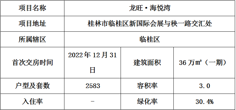 龙旺·海悦湾宜居指标