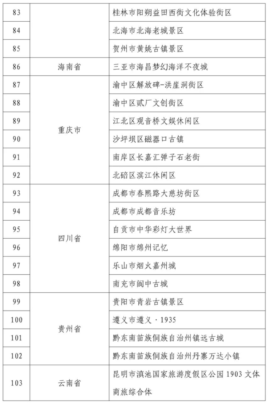 夜间文化和旅游消费集聚区名单的公示