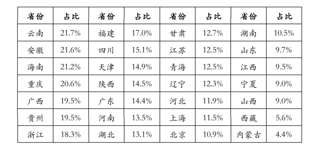 2019年房地产开发投资占 GDP 比重省市排名,数据来源:易居研究院