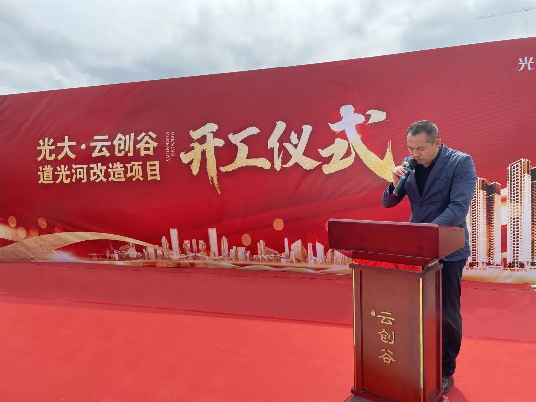 仪式初始,光大云创谷地产负责人范伟民首先上台致辞:此次道光河的开工仪式对于光大·云创谷来说,是至关重要的大事情,道光河的动工意味着项目正在逐步兑现给云创谷业主的承诺,在美化河岸景观的工作上,始终践行“绿水青山就是金山银山”生动的理念。此次仪式的成功举行也少不了灵川县、高铁园各级领导的大力支持,共同为高铁园芯的生态环境做出贡献。