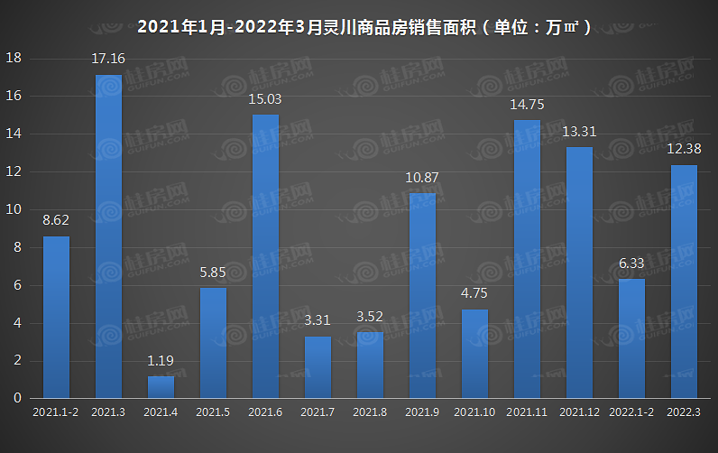 数据显示,2022年1-3月,灵川新建商品房累计销售面积为18.71万㎡。其中,3月灵川县商品房销售面积为12.38万㎡。