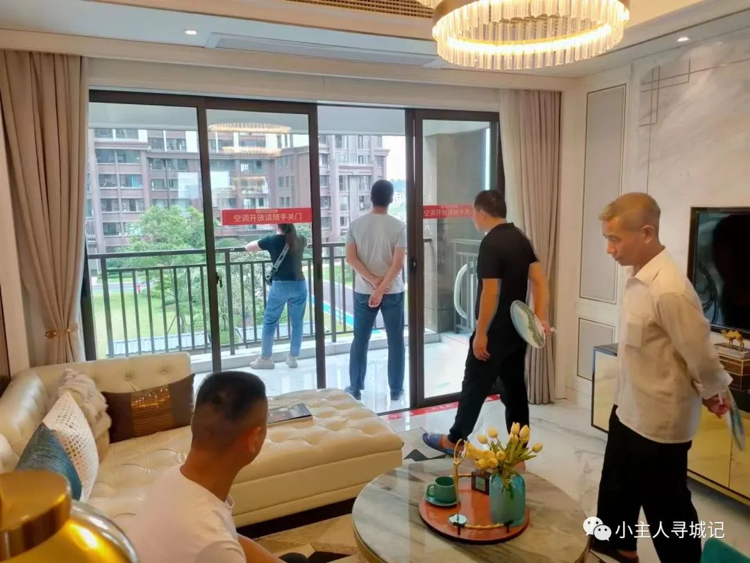 地处桂黄公路旁的大龙府是本次购房直通车的第三站。该楼盘是一个“高大上”的项目,小区所有楼房都超过30层,让购房团市民仿佛置身于一线繁华大都市。对于楼房过高带来的压抑感的担心,很快被看房团市民走进样板间的良好舒适体验所打消。看房团市民站在阳台,发现两栋之间的楼间距都超过80米,视野开阔、凉风习习,小区中间1000平方米的无边际泳池和各种娱乐设施,令人对未来在这里享有的高品质生活充满了想象和期待。