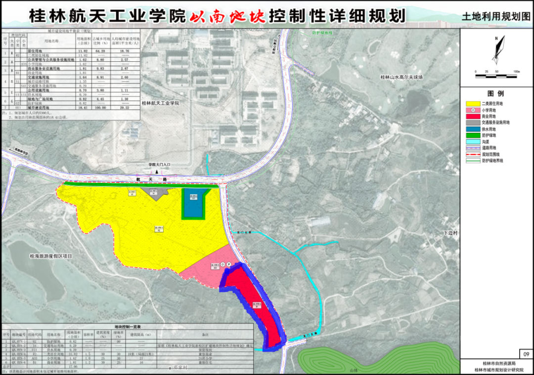 而今年4月份,市自然资源局同时也公布了《桂林航天工业学院以南地块控制性详细规划》,其中涉及的住宅用地即为GJ202206地块所在片区上,位于桂林市航天业学院南校区航天路南侧,规划城市人口约5300人。从现状来看,包括GJ202206地块所在的桂林航天工业学院以南片区,周边区域目前主要为荒地区,龙门支渠经地块东面贯穿而过而过,用地整体上处于桂林城郊地带,片区范围总用地18.41公顷。