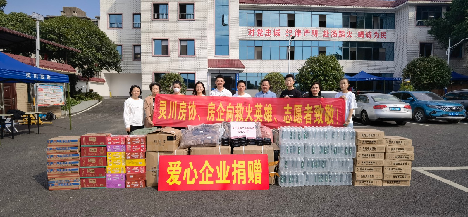 此次捐赠活动,捐物包括迷彩大衣、多功能大衣、手电筒、八宝粥、午餐肉、榨菜、压缩饼干、矿泉水等物资。灵川房协和房企,以实际行动向救火英雄、志愿者们致敬!