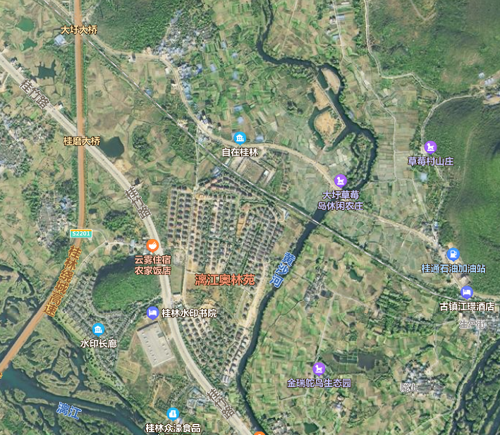 从位置来看,该地块位于漓江东岸大圩草莓岛附近,生态环境优美,周边有自在桂林、桂林彤文景观苑等文旅项目,以及高端山水别墅区水印长廊。