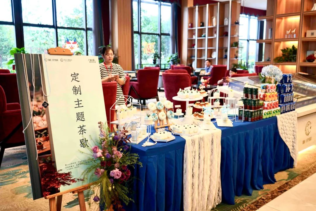 项目特别定制蓝白色系甜品台,纸杯蛋糕、布丁、甜甜圈、泡芙……颜值与美味兼具,仿佛置身蓝色梦境。