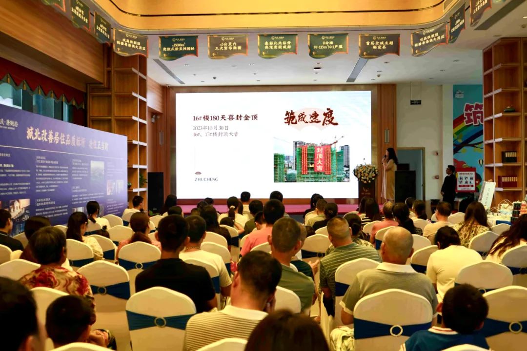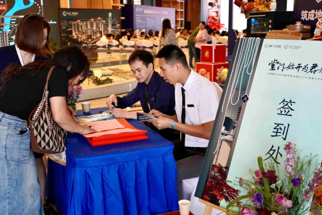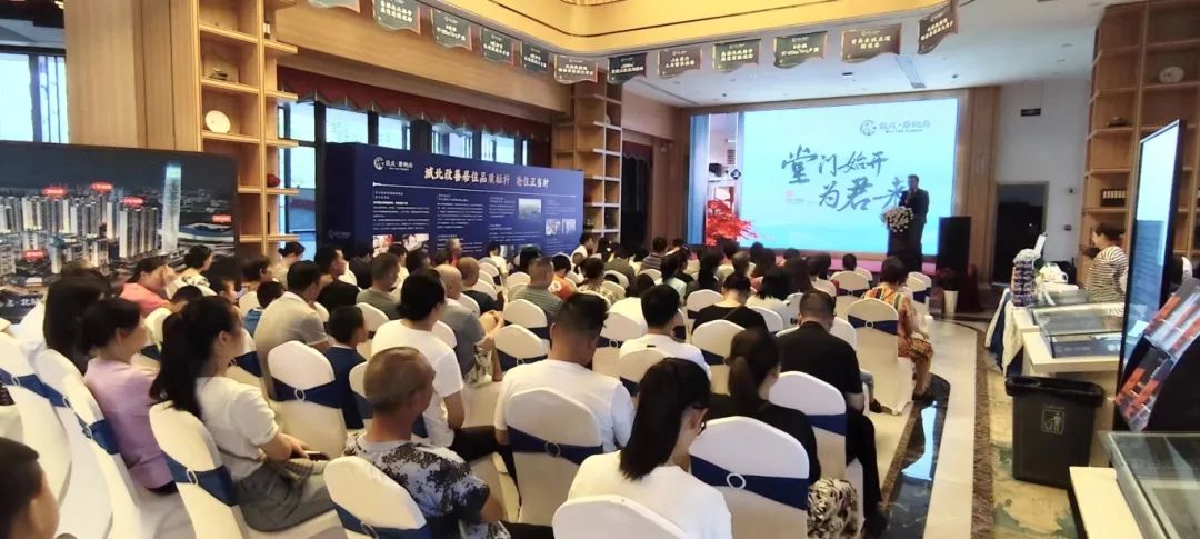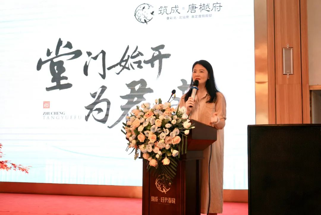 活动现场,筑成地产营销总监-罗祎总带领大家简单回顾了【筑成·唐樾府】从2023年4月项目奠基至今的发展历程。展示了项目5月劲销近30套的喜人战绩,并正式向大家介绍全新加推的19#王炸新品户型,引起了现场来宾的热议和极大兴趣。
