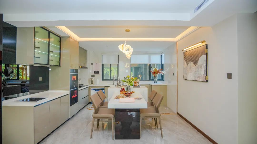 U形厨房设计,巧妙融入了活动岛台,无论是中式烹饪的烟火气还是西式料理的精致感,都能在这里自由发挥,满足多样化的生活需求。