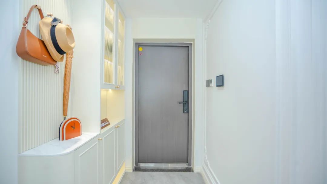 117平方米四房户型,主打豪华与舒适并重的居住体验,空间布局灵活。样板间中,设计师将原四房格局调整为三房,一入户就是宽敞明亮的大横厅,开阔的视野与空间感,让人恍若置身于大平层之中。