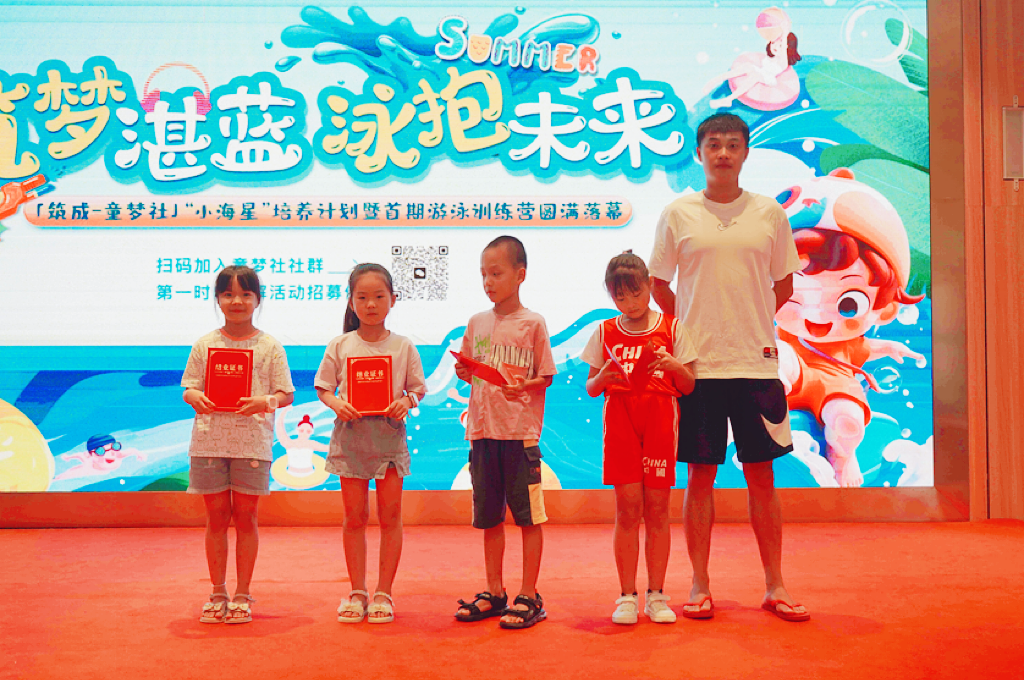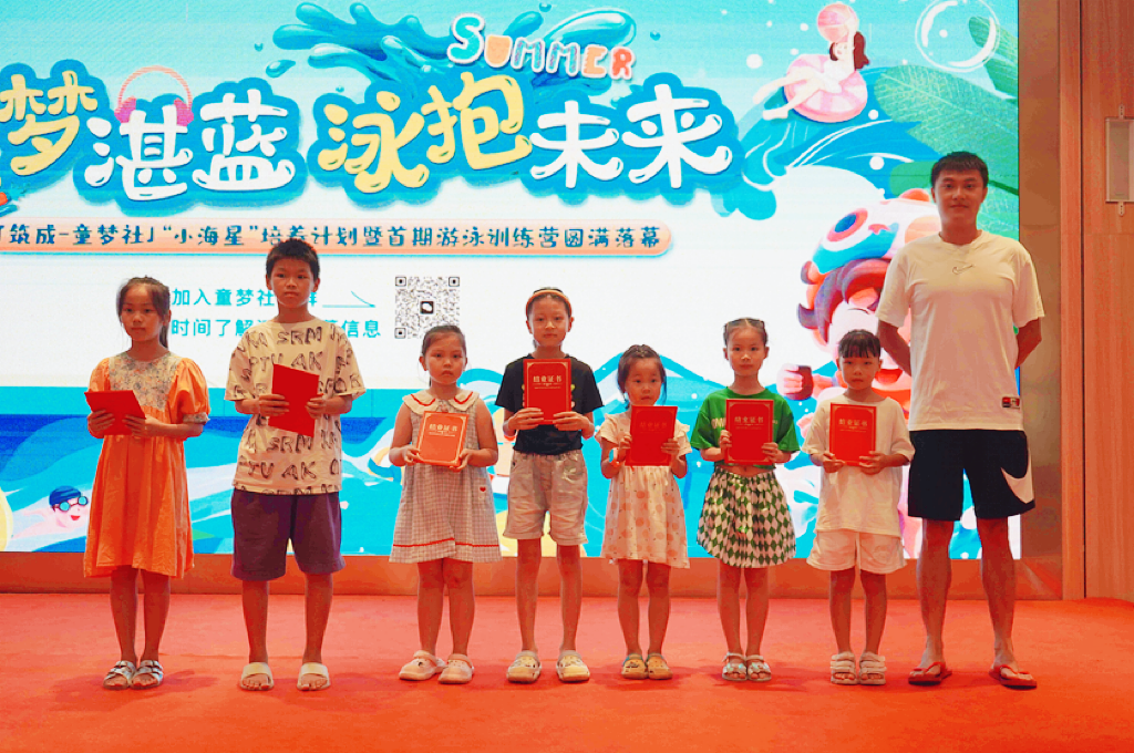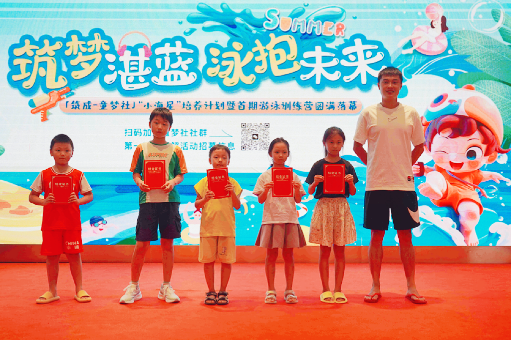 “小海星”游泳训练营的结业,不仅是一个阶段的结束,也是筑成公益之路全新的开始。“小海星”培养计划将作为每年夏季「筑成·童梦社」固定的公益项目,在筑成社区里延续下去。