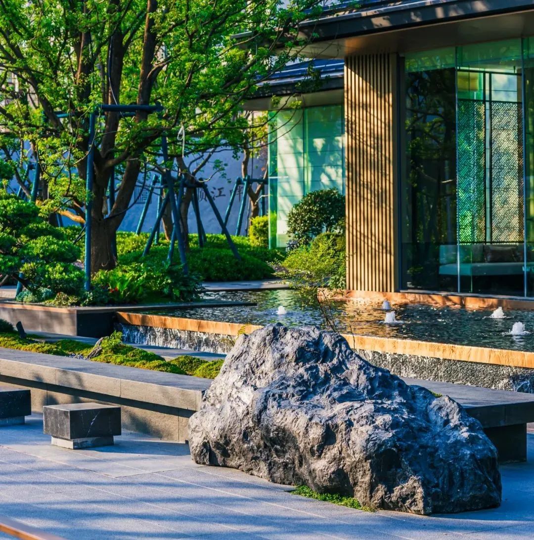 “良木见匠心”,作为园林中最具生命力的部分,项目对植物景观的栽植十分考究,不惜成本对社区景观中的每一棵树木的树种、树龄、树形层层甄选,引入朴树、香樟、乌柏、丛生冬青等多种名贵树种进行全冠移植,细心点缀,层层叠景,将宋式园林之精华与当代园林之巧妙揉合。