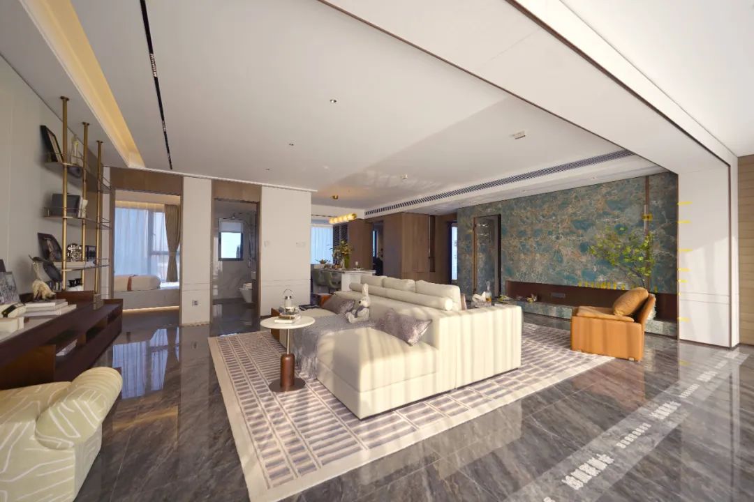 甄选装修材料及国内外一线品牌软装,空间色彩以大面积的浅白调及自然色为主,提取浅木色和金属色进行点缀,强调现代、时尚、简洁及功能性的空间性格。以艺术设计,让空间释放品质和精致生活状态。以超越之姿,营造更优越的人居体验。