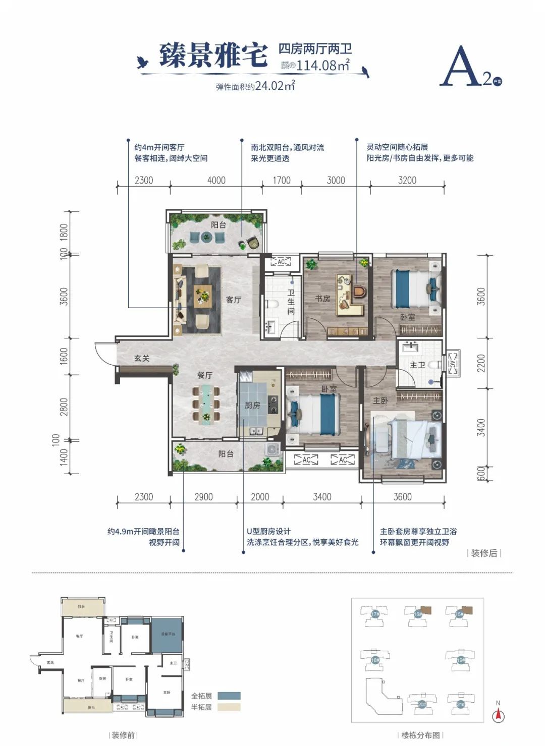 筑成·唐樾府现在售建面约97-133㎡的实景现房,户型仍旧是目前市场热捧的高拓展、高赠送“N+1”产品,兼具舒适度及实用性。例如114㎡的“3+1房”,额外可拓展面积达到了约24㎡,得房率超过了100%,户型做到了双向景观阳台,最小的书房也都超过了10㎡。