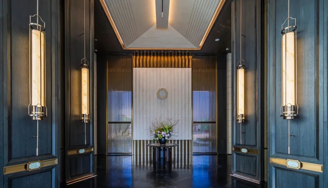 单元大堂充满手工质感的鎏金墙饰,简约中透出洗尽铅华的内敛与品位。