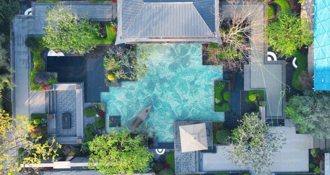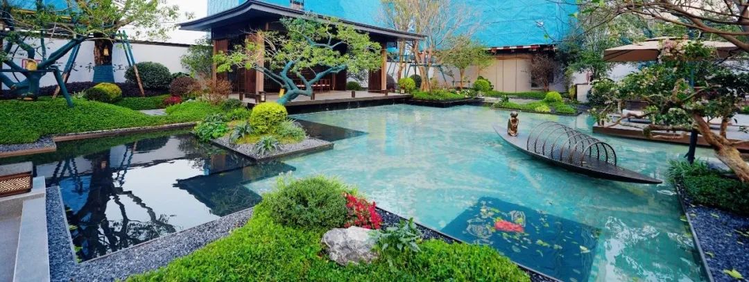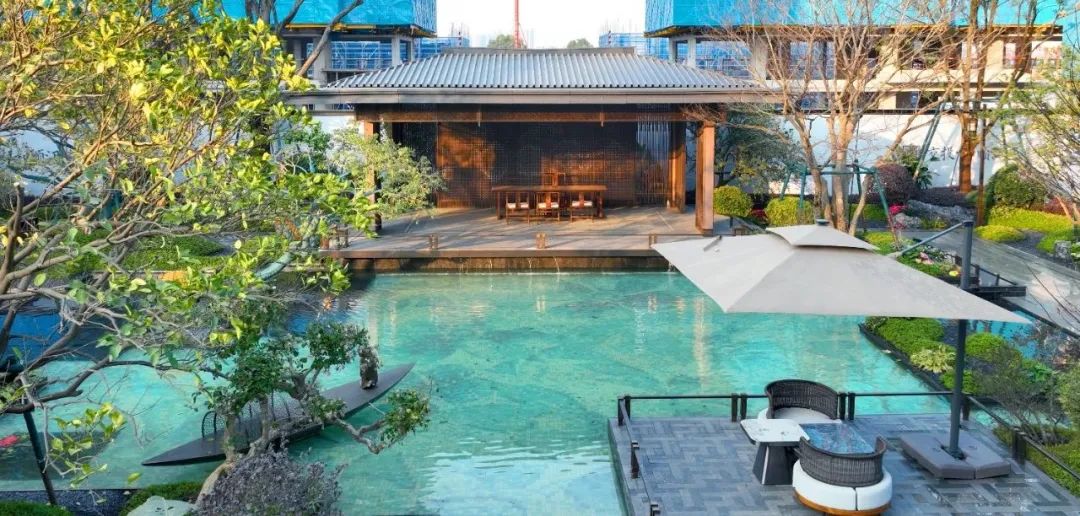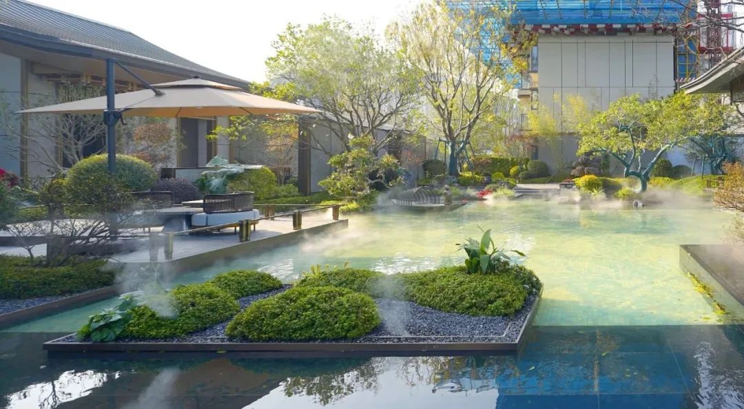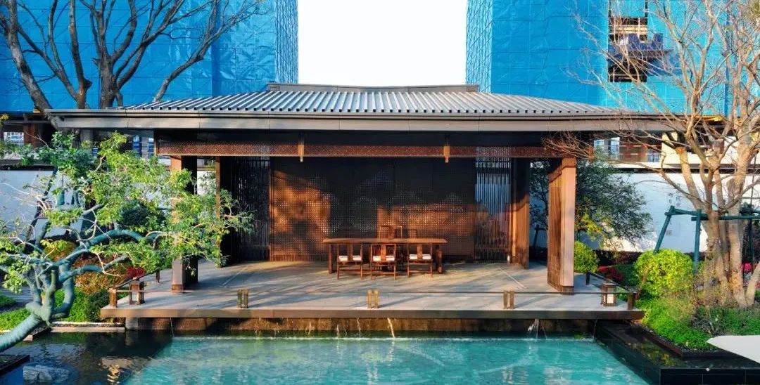 设计汲取苏州园林之精髓,巧妙地将东方园林的亭台、小径、水景相融合,营造出古典又现代的诗意氛围。