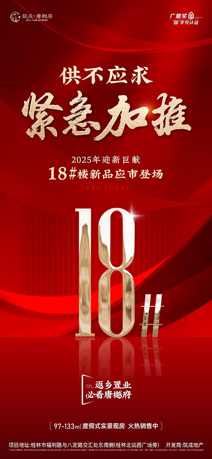 筑成地产五周年超越力作。全新升级6大超越,打造桂林版【虹夕诺雅】隐奢酒店式住区,2.52低密容积,仅480臻席,18层独栋独单元设计,超15000㎡度假式新亚洲园林,精研建面约89-139㎡N+1高拓美学观邸,0公摊设计,超高得房率,户型最大可拓展面积达约24㎡。