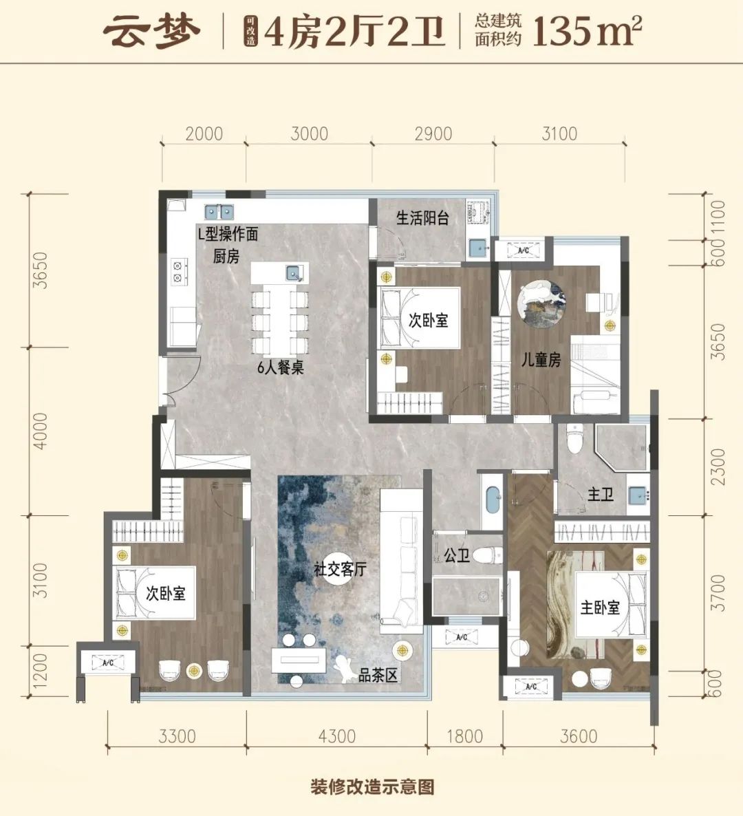 在情景样板间中,小桂能感受到彰泰更深层次的用意——摒弃过往样板间华丽重工的装饰布置,高度还原真实的日常生活,让购房者们看得更明白真切。小桂了解到,59#楼为项目二期全新加推楼栋,该楼栋为一梯二户的纯板式电梯洋房,分别有建面约135㎡4房2厅2卫、建面约150㎡4+1房2厅2卫户型。建面约150㎡4+1房2厅2卫