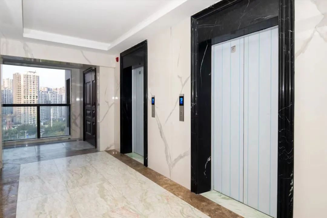 走进电梯厅前室,地面铺着彩玉大理石,墙面贴的是大尺寸爵士白岩板,虽然看着不花哨,却处处透着品质,让人感觉踏实又自在 。