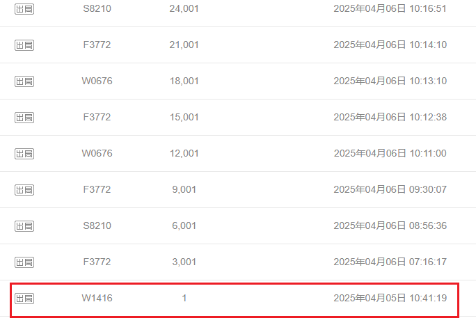 然而,拍卖一开始,场面并没大家想象的那么热闹。拍卖大幕拉开后,2025年4月5日10:41:19,第一位勇士“W1416”闪亮登场、果断应价,然后以“1元”的价格稳稳守擂到4月5日结束,愣是没人来“抢戏”。