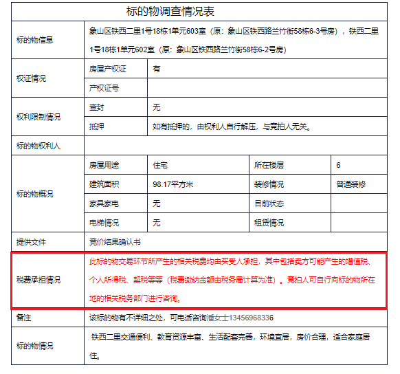 这两套房子位于桂林市象山区铁西二里1号18栋1单元602、603室,建筑面积98.17 ㎡(其中602室31.94㎡,603室66.23㎡),房屋有产权证,且无查封。