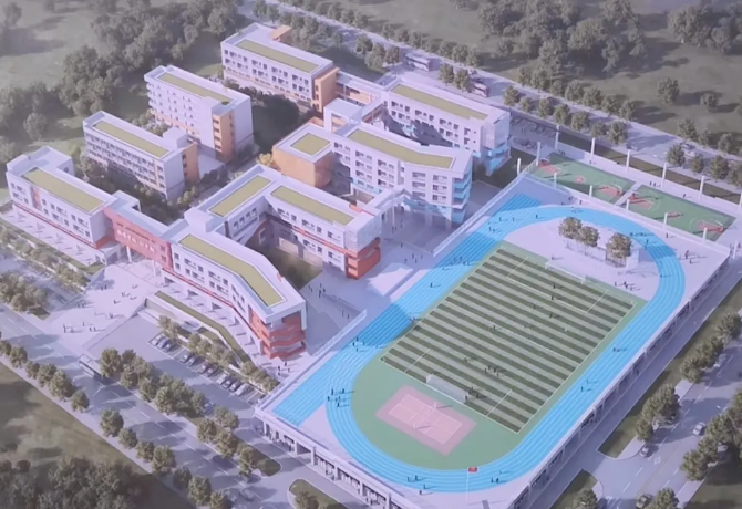 秧塘华为片区九年一贯制学校为公立全日制学校,涵盖小学到初中。学校规划建筑面积33084.48平方米,主要包括1#初中教学楼、2#办公综合楼、3#小学教学楼、4#午休宿舍楼、5#架空操场。教学用房设42间普通教室,可容纳200名教职工,满足2010名学生就读需求。