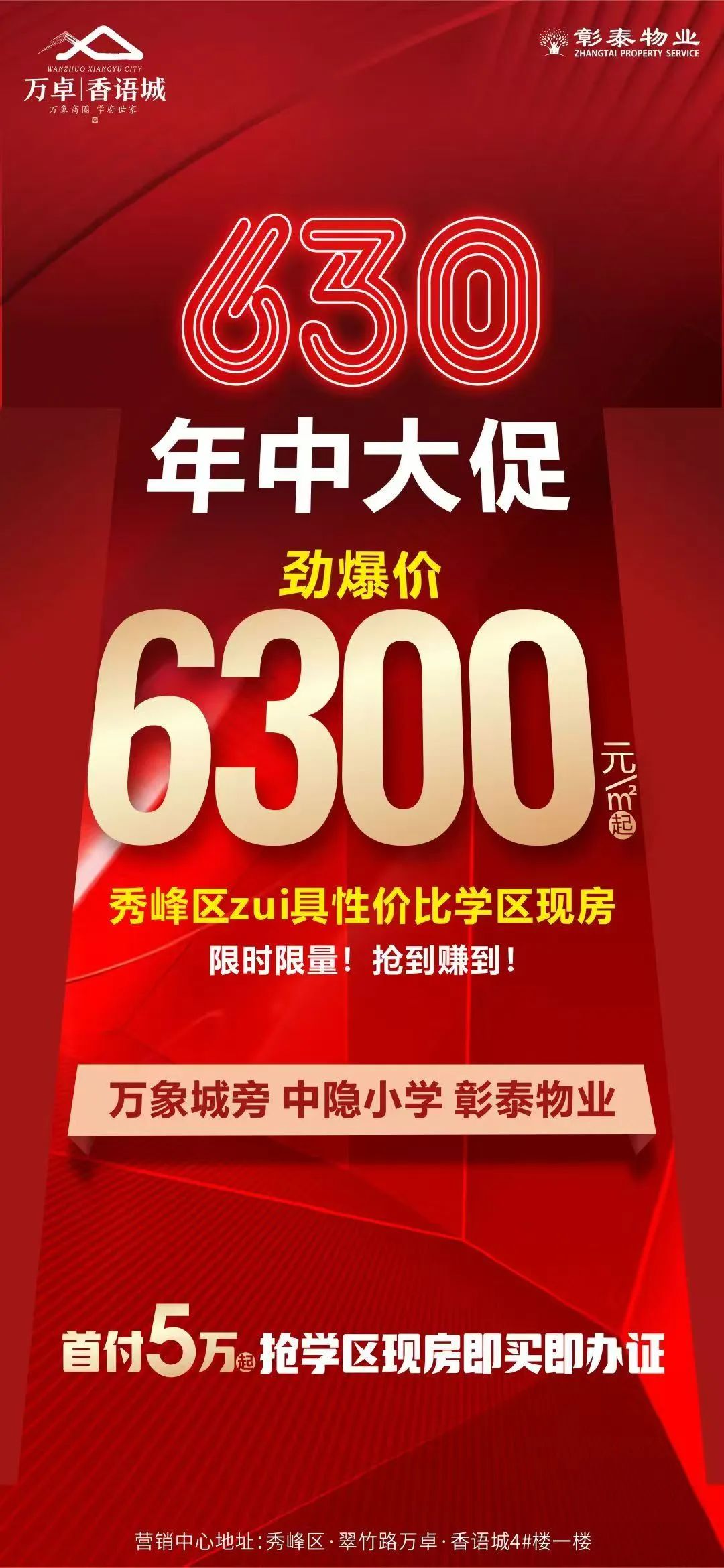 「学区现房」清栋特惠:6300 元 /㎡起,首付仅5万起,即可落户中隐小学学区,秀峰区最具性价比学区现房,适合刚需家庭上车。