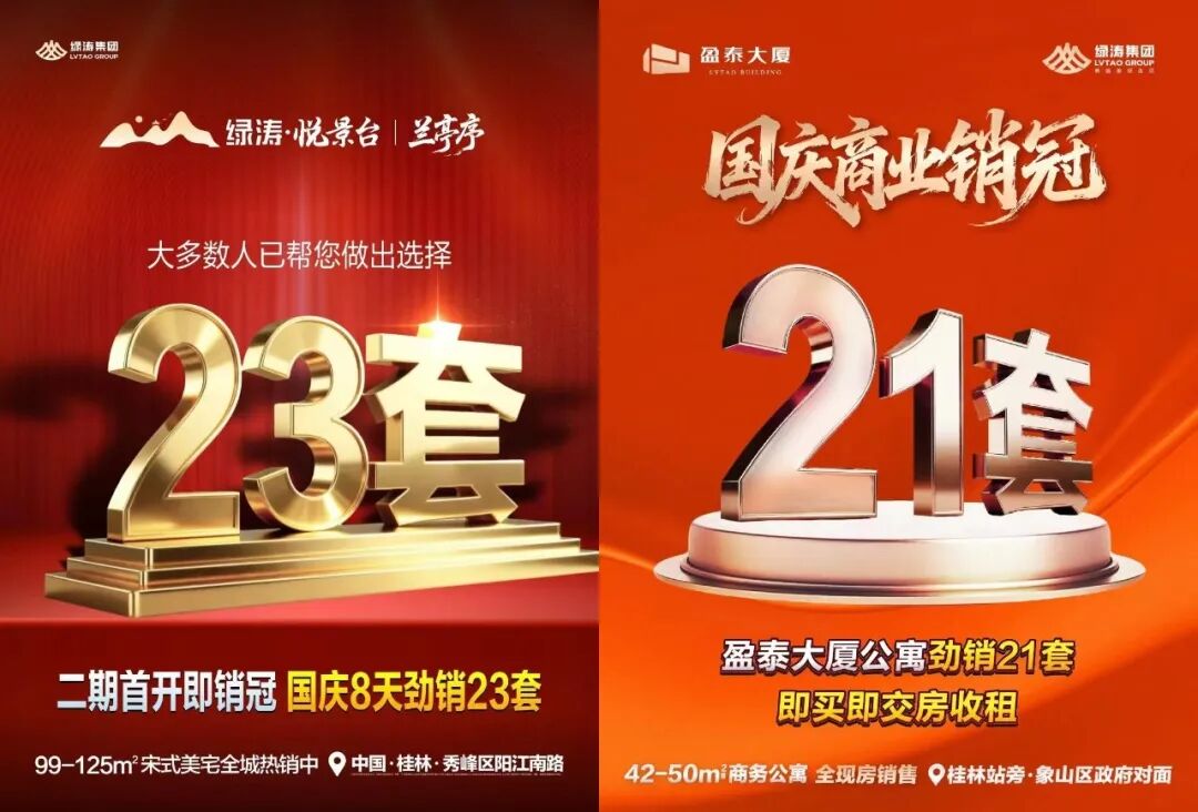 假日期间,绿涛集团旗下多个项目表现稳健。其中,悦景台二期兰亭序3# 楼加推后实现住宅销售23套;盈泰大厦公寓销售21套;悦江湾也顺利去化4套,目前仅余最后4套房源。盈泰大厦作为桂林目前唯一在售的新建公寓项目,凭借纯玻璃幕墙外立面,已成为区域标志性建筑。